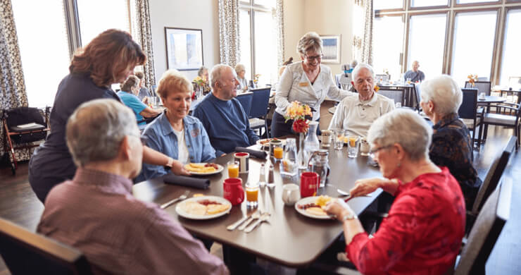 Our vibrant culinary offerings extend to the Clearbrook Memory Support neighborhood. Dining experiences are tailored to meet residents’ needs while using sensory cues to stimulate appetite and encourage self-care. Meals are served restaurant-style to inspire choice, maintain dignity, and promote independence—without compromising flavor or presentation. Modified menu options are also available.